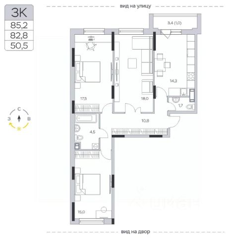 Продаётся 3-комнатная квартира 430, площадью 76,69 м², на 8 этаже в ЖК "Императорские Мытищи" корпус 1.1. Стоимость — от 15842405 руб. Квартира без отделки, планировка распашная, окна во двор.