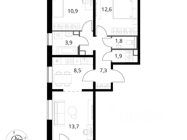 Продается 3-комн. кв-ра площадью 83.40 кв.м на 8 этаже 9 этажного монолитного дома в ЖК "ВЕЙВ" от Группа ЛСР. Вторая очередь ВЕЙВ представляет собой архитектурный ансамбль из семи корпусов переменной этажности, объединенных общим стилобатом, в котором расположатся различные объекты инфраструктуры. Со стороны улицы Борисовские Пруды ВЕЙВ предстает тремя стометровыми башнями, выполненными футуристичными каскадами из стекла и металла. С противоположной стороны — три невысоких здания с непохожими друг на друга фасадами, придающими комплексу свой характер и уникальность. Ключевым преимуществом ВЕЙВ является благоустроенная набережная со смотровой площадкой, беговыми и велодорожками, детскими и спортивными. В центре квартала появится зеленый пешеходный бульвар с детскими и спортивными площадками, а также зоной тихого отдыха. Вокруг жилого квартала сосредоточены более 2000 га зеленых пространств: парк "Борисовские пруды", Братеевский каскадный парк, парк 850-летия г. Москвы, музеи-заповедники "Царицыно" и "Коломенское". Особое внимание в ВЕЙВ уделено интерьерам лобби, выполненным в современном стиле с контрастными акцентами. Стильное пространство разделено на несколько зон: ресепшен, зона ожидания с Wi-Fi и мягкими креслами, колясочная и лаконичный лифтовый холл. Для автомобилистов предусмотрен подземный паркинг с видеонаблюдением, зоной с оборудованием для подкачки колес, усилителем сотовой связи и системой распознавания номеров.