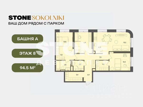 Старт продаж квартир в ЖК STONE SOKOLNIKI от девелопера STONE. В продаже просторная двуспальная квартира с кухней-гостиной и двумя спальнями для реализации любого дизайн-решения, идеально подходящая молодым парам, которые только планируют пополнение, а также небольшим семьям, где малыш уже подрастает. Современная архитектура проекта органично вписана в городскую среду. Концепция проекта разработана архитектурным бюро WALL Проект состоит из трех разновысотных башен высотой в 33, 28 и 24 этажа с чистой геометрией и увеличенной площадью остекления, которая позволит насладиться городской панорамой и видами на парк "Сокольники". Транспортная доступность - 10 мин. пешком до метро и БКЛ "Сокольники" и "Электрозаводская" - 12 мин. пешком до парка Сокольники - 10 мин. пешком до станции МЦД-3 "Митьково", которая позволит комфортно добираться в центр города и за его пределы Инфраструктура: В каждой входной группе предусмотрены помещения для временного хранения велосипедов, лапомойка, гостевой санузел, а также комната матери и ребенка. А колясочные появятся на каждом этаже - ведь это самое удобное решение для детей и их родителей. Планировочные решения: Планировки квартир в STONE Sokolniki создавались с учетом разнообразия современных сценариев жизни в городе. В проекте предусмотрены просторные кухни-гостиные, изолированные спальни с мастер-блоком, планировки для семей со взрослыми детьми, с двумя детьми разных возрастов. Благодаря грамотному зонированию квартир можно насладиться и временем с семьей, и уединением или, наоборот, устроить вечеринку вместе с друзьями. - Квартиры от 28 до 135 кв. м. Детский сад во дворе дома: Девелопер STONE осуществляет самостоятельный поиск оператора для детского сада, так как курирует наполнение проекта. На этапе финальной готовности будет выбран лучший оператор, отвечающий запросам качества и цены. Во всех своих проектах девелопер берет на себя ответственность за сдачу части помещений. Удобное хранение: В проекте STONE Sokolniki предусмотрена максимальная обеспеченность кладовыми. Хранения велосипедов в подземном паркинге возможно в зимний период, а летом будет организовано временное хранение на улице. Колясочные есть на каждом этаже всех трех жилых башен. - Колясочные на этаже - Кладовые для хранения Безопасная собственная территория дома, сим и паркинг: Внутри двора комфортно перемещаться пешком, все въезды в паркинг организованы по внешнему периметру. Велосипеды, самокаты и электросамокаты, детские беговелы и коляски - в приоритете, для всех колесных видов транспорта продуманы удобные маршруты движения и варианты хранения в разные сезоны. STONE - девелопер коммерческой и жилой недвижимости классов бизнес и премиум в Москве с 18-летним опытом. С 2022 года занимает лидирующую позицию на офисном рынке (рейтинг РБК). Сегодня в портфеле девелопера представлено 2,5 млн кв. м построенных, строящихся и проектируемых объектов, из которых более 850 тыс. кв. м находятся в стадии строительства. Компания имеет самый