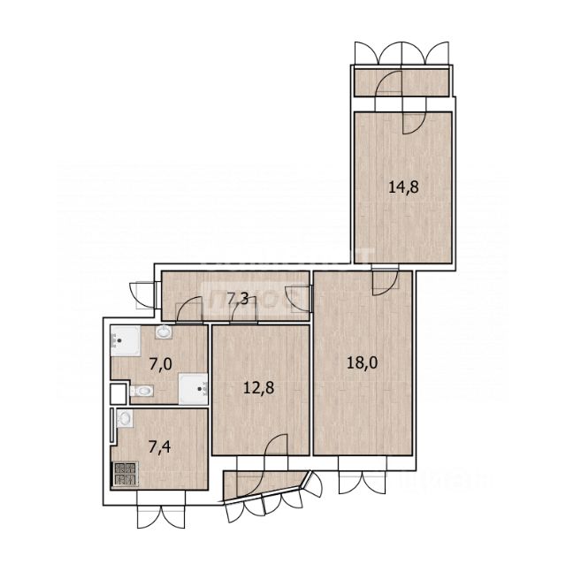Продаётся 3-комнатная квартира 288, площадью 67,86 м², на 8 этаже в ЖК "Императорские Мытищи" корпус 1.1. Стоимость — от 16150871 руб. Квартира с отделкой, планировка угловая, окна на улицу.