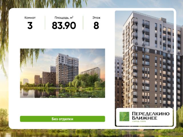 Продажа 3-комнатных квартир на 8 этаже рядом с метро Новопеределкино