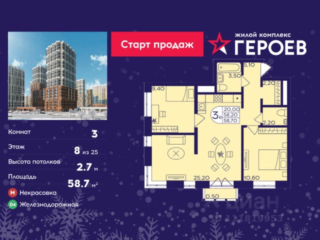 • ✓ В базе Циан 23 3-комнатных квартир на 8 этаже рядом с метро Ольгино