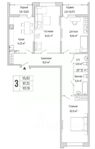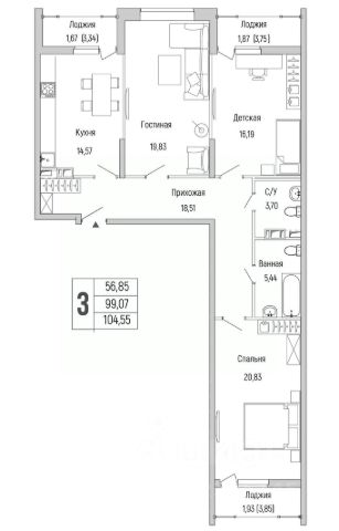 Продаётся 3-комнатная квартира 833, площадью 58,87 м², на 8 этаже в ЖК "Ильинойс" корпус 3. Стоимость — от 13664441 руб. Квартира без отделки, планировка угловая, окна на улицу.