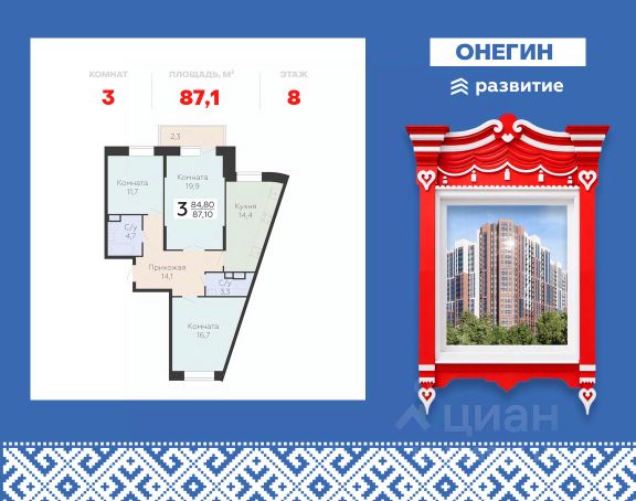 Продается 3-к квартира площадью 83.12 кв. м с черновой отделкой. Квартира находится на 8 этаже 22 этажного дома, в новом жилом комплексе "Онегин", расположенном по адресу: Московская область, г. Подольск, ул. Садовая 3, корп. 1А. "Онегин" - комфорт в деталях. Проект от федерального застройщика "Развитие" расположился в центральной части Подольска - города-спутника столицы. Жилой комплекс состоит из 10 секций переменной высоты (20 - 22 этажа) и включает в себя 510 квартир, собственную инфраструктуру, закрытый благоустроенный двор-парк. Прекрасный баланс города и природы - ЖК "Онегин". Расположение Пешком: - 5 мин. до остановки "Красная горка"; - 10 мин. до склона у реки Пахры; - 30 мин. до центра Подольска; - 30 мин. до МЦД "Силикатная" (или 15 мин. на автобусе). На автомобиле: - 3 мин. до проспекта Ленина с выездом на Симферопольское шоссе; - 10 мин. до МЦД-2 "Подольск"; - 10 минут до горнолыжного комплекса "Красная Горка"; - 30 мин. до ст. метро "Бульвар Дмитрия Донского"; - 35 мин. до МКАД. Благоустройство - большой приватный двор-парк; - всесезонная растительность: взрослые деревья, кустарники, травы, цветочные клумбы; - декоративные камни и многоуровневое освещение для уютной атмосферы; - мощеные тропинки с деревянными скамейками для отдыха; - площадки для малышей с безопасным покрытием; - яркие игровые комплексы для подростков; - спортивный корт для футбола и баскетбола; - многофункциональная воркаут-зона; - уютные места для чтения или работы в тишине. Комфорт и безопасность - монолитно-кирпичные дома с высокой тепло- и шумоизоляцией; - витражные окна, наполняющее квартиры и подъезды светом; - стильные и просторные входные группы; - вход в подъезд без ступенек и перепадов, комфортный доступ для родителей с колясками, пожилых людей и маломобильных жителей; - на первом этаже предусмотрены просторные колясочные; - 2 пассажирских лифта и 1 грузовой в каждом подъезде; - система охраны и круглосуточное видеонаблюдение. Инфраструктура и окружение - подземный паркинг на 262 машино-места, спуститься к автомобилю можно прямо с вашего этажа на лифте - быстро и удобно в любую погоду; - гостевые парковочные места на прилегающей территории; - кладовки расположены на -1 и -2 этажах, хранить сезонные вещи легко и безопасно: доступ - напрямую с вашего этажа на лифте; - школы, частные и муниципальные детские сады, магазины, кафе и все сервисы бытовых услуг в шаговой доступности; - на первых этажах - коммерческие помещения, все необходимое рядом; - 3 фитнес-центра, стадионы "Зенит" и "Подолье", 4 взрослых и детских бассейна; - торгово-развлекательные центры "Капитолий", "Галерея", "Кварц"; - парк культуры и отдыха имени В. Талалихина, музей-заповедник "Подолье", горнолыжный комплекс "Красная Горка", исторические усадьбы "Остафьево" и "Дубровицы" и другие места для семейного отдыха.