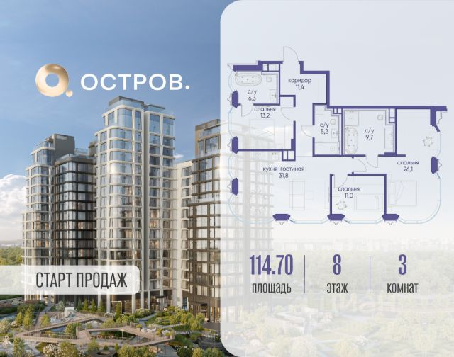 Продажа 3-комнатных квартир на 8 этаже рядом с метро Терехово