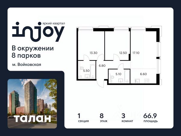 • ✓ В базе Циан 15 3-комнатных квартир на 8 этаже рядом с метро Войковская