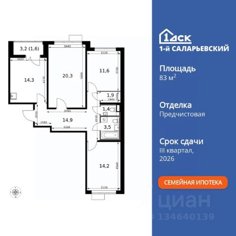 Прямая продажа от застройщика! Жилой Комплекс класса Комфорт+. Продаётся 3-к квартира номер 25 общей площадью 83.7 кв.м. на 8-м этаже 9 этажного здания. Предчистовая отделка. Цена с учётом скидки. Особенности квартиры: - Организуем показ в удобное для вас время! - Просторная спальня, в которой можно разместить большую кровать. - Распашная планировка - отличное сочетание удобства и свободы. - Увеличенная ширина окна/окон - больше света и визуального простора. - Гостевой санузел - комфорт и удобство для ваших гостей. - Место для игры/занятия спортом - идеальное пространство для активных детей. - Можно оборудовать 2 или более рабочих места - пространство для нескольких человек. - Можно оборудовать рабочее место - комфорт для работы и учёбы. - Просторная кухня - место для семейных ужинов и кулинарных экспериментов. - Просторная мягкая зона - комфорт и уют для отдыха всей семьи. - Линейная кухня - функциональность и практичность в одном решении. - Наличие острова на кухне - удобство и стиль для вашей кухни. - Гардеробная - удобство для хранения и организации вещей. - Лоджия - уютное место для отдыха и тишины. Квартира с предчистовой отделкой. Вам не придется заниматься черновыми и трудоёмкими работы, а чистовую отделку и дизайн - сделайте на свой вкус. Информация о комплексе: Микрорайон спроектирован по концепции "без машин": безопасные пешеходные зоны, дворы без автомобилей. Для гостей и перевозки грузов - сквозные подъезды с внешней стороны и паркинги на 7 этажах. Безбарьерная среда для колясок и маломобильных групп, повсеместное видеонаблюдение. Удобство и порядок без ущерба для комфорта жителей. Транспортная доступность: "1-й Саларьевский" в Новой Москве: 2 км от МКАД, 5 минут пешком до метро "Саларьево". Удобный выезд на Киевское шоссе для автомобилистов. Рядом ТЦ "Саларис" с покупками и развлечениями для всей семьи. Личный автотранспорт: До Киевского шоссе - 0,2 км До МКАД - 2,4 км До Калужского шоссе - 5 км До Ленинского проспекта - 3,2 км Общественный транспорт: До станции метро "Саларьево" - 7 мин пешком До остановок наземного транспорта - 5-10 мин пешком До Ленинского проспекта на автобусе - 10 мин Внутренняя инфраструктура: Во дворе царит беззаботная атмосфера: магазины первой необходимости, уютные кафе и кофе-пойнты. На бульваре - уличные выставки, шахматные столы и световые качели. Свой детский сад на 225 мест и муниципальная школа на 450 учеников плавно сопровождают взросление детей. Рядом - развитая инфраструктура: фитнес-центры, парки, ТРЦ для шопинга, салоны красоты и рестораны. Всё в шаговой доступности или в паре минут на велосипеде. Идеальная среда для жизни - каждый элемент продуман для комфорта и радости. Квартира с предчистовой отделкой - ваш дизайн без черновых работ