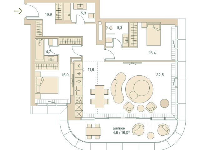 Трёхкомнатная велнес-резиденция площадью 114.4 кв. м. на 9 этаже с видом на двор и центр в доме премиум-класса Springs. В квартире выполнена чистовая дизайнерская отделка. Резиденция наполнена светом и воздухом, благодаря панорамному остеклению и высоким потолкам. На первом этаже дома расположены: - фитнес-центр с бассейном; - СПА с хаммамом; - бьюти-зона с массажным кабинетом. - ресторан. Все сервисы доступны исключительно для резидентов. Всего в 2 минутах ходьбы от дома находится заповедный парк Фили прекрасное место для спокойного и активного отдыха. Зеленый массив, набережная, велотропы и открытые зоны для йоги, а также шахматный клуб, летний кинотеатр, множество беседок и кофеен. До делового комплекса Москва-Сити всего 16 минут, а центр — в 14 минутах езды по Кутузовскому проспекту. Удобный выезд к Рублёвскому шоссе — отличная возможность на выходных сбежать с детьми за город, потратив на дорогу меньше получаса. Концепция благоустройства Springs, разработанная студией Wowhaus, воплощает идею взаимного проникновения парка и озеленения внутренней территории: естественная растительность, дополненная акцентами из цветников, плавно вступает во двор. В сочетании с бионической архитектурой дом является органичным продолжением природного ландшафта парка.