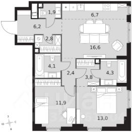 • ✓ В базе Циан 27 3-комнатных квартир на 9 этаже в районе Хорошево-Мневники в Москве