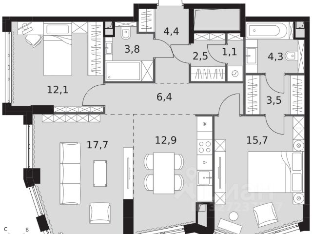 Скидка до 8% действует до 31.03.2026 г. при 100% оплате и не субсидированной ипотеке. Продаётся трехкомнатная квартира от застройщика: общая площадь 87.60 м², жилая 38.50 м², кухня 21.60 м², 9, жилой квартал "Остров 12", корпус 3 (12.1 квартал) (секция 1). срок сдачи: 4-кв. 2025. , 3 санузла: 1 раздельный и 2 совмещенных. В жилой зоне 2 больших окна на одну сторону, хорошая инсоляция. Позвоните сейчас и забронируйте квартиру! Купите квартиру для курортной жизни в Москве в квартале ОСТРОВ.12.1. Это единственный на ОСТРОВЕ квартал бизнес-класса, расположенный на первой линии у реки - здесь царит атмосфера ежедневного отпуска. Дома созданы в узнаваемом футуристичном стиле и выглядят как произведения современного искусства. Для жителей предусмотрены фитнес-рум и детский клуб, гостиная и кинотеатр, переговорные и репетиторские комнаты. На крышах устроены видовые общественные пространства с зонами для йоги, коворкингами, лаунжами. Двор-парк располагает всем необходимым для отдыха и общения всех возрастов. ОСТРОВ.12.1 - часть жилого комплекса на западе Москвы, в 15 минутах езды от центра. Это настоящий заповедник посреди большого города, в окружении реки и 650 га заповедников. Здесь все необходимое находится по соседству: от детского сада до супермаркета, от фитнес-зала до серфинг-центра. На территории созданы все условия для отдыха и общения: клубная инфраструктура в домах и дворы-парки, набережные и променады, маршруты для спортсменов, детей и возрастных жителей. В нескольких минутах ходьбы расположена станция метро "Мнёвники" БКЛ. На автомобиле - 10 минут до Москва-Сити и 15 минут до Садового кольца.