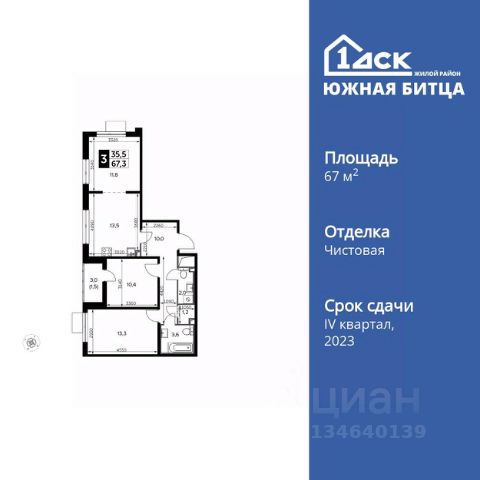 Прямая продажа от застройщика! Семейный жилой район класса Комфорт Плюс Продаётся 3-к квартира номер 119 общей площадью 67.4 кв.м. на 9-м этаже 20 этажного здания. Чистовая отделка. Цена с учётом скидки. Особенности квартиры: - Гостевой санузел - комфорт и удобство для ваших гостей. - Евроформат - просторное и удобное жилье с отличной планировкой. - Просторная кухня - место для семейных ужинов и кулинарных экспериментов. - Лоджия - уютное место для отдыха и тишины. Информация о комплексе: Сочетание свободного перемещения по внутреннней территории без машин и ощущения абсолютной безопасности благодаря надежным ограждениям - вот что отличает ЖК Южная Битца. На территории комплекса созданы все условия как для активного образа жизни, так и для спокойного времяпрепровождения. Свободно перемещайтесь по внутренней территории в безбарьерной среде! Продуманное зонирование во дворах позволяет отделить тихие зоны для родителей со спящими младенцами и тех, кто хочет почитать на свежем воздухе, от шумных игровых зон. Игровые зоны учитывают возраст детей. Площадки для детей старшего возраста вынесены за пределы дворов. Ощущение уютного дома должно начинаться с подъезда. Мы постарались предусмотреть все нюансы, чтобы наши лифты отвечали самым строгим современным требованиям. А наличие кладовых позволит вам поддерживать идеальный порядок и уют в вашей квартире! Транспортная доступность: В 3 км от МКАД в нескольких минутах езды до трех станций метро: Аннино, Бульвар Дмитрия Донского, улица Старокочаловская и станции МЦД2 - жд Бутово. Внутренняя инфраструктура: Для жителей жилого района "Южная Битца" доступна развитая инфраструктура близлежащих московских районов Чертаново, Южное, Бирюлёво Западное, Северное Бутово и Южное Бутово. Множество образовательных учреждений, объекты здравоохранения, торговые и развлекательные центры, кинотеатры, кафе, рестораны, парки.