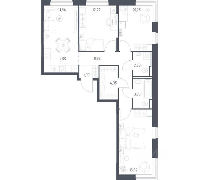 Все то, что на фотографиях на шестиметровой кухни (в т.ч. холодильник Liebherr использовался менее года), санузла (в т.ч. машинка ARDO, использовалась меньше полу года, сборка итальянская) и коридора остается в квартире. Из комнат все заберу.