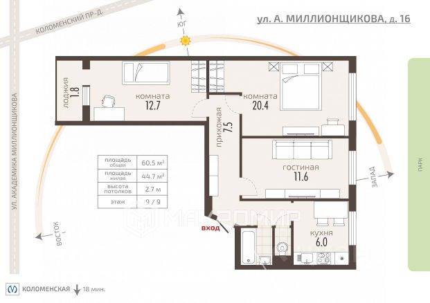 В районе Москворечье-Сабурово продается 3-комнатная квартира площадью 65.47 м². Она расположена на 9 этаже в 262 корпусе нового жилого квартала LIFE Варшавская. Площадь комнат: гостиная — 13,67 м² спальни — 11,98 м², 12,86 м² кухня — 6,36 м² ванная — 4,16 м² В LIFE Варшавская мы создали идеальные условия для жизни молодых людей и семей с детьми, тинейджеров и спортсменов, домохозяек и бизнесменов. Жилой квартал LIFE Варшавская удачно расположен: 5 минут до станции "Варшавская" 10 минут до станции "Каширская" 18-25 минут до парка-усадьбы "Коломенское", Битцевского леса и музея-заповедника "Царицыно" Богатая инфраструктура — это визитная карточка проекта. На территории работают детский сад на 160 мест и школа на 900 мест с IT-полигоном и мультифункциональным спортивным стадионом. В квартале разместились пешеходный бульвар, игровой плейхаб "Змейка", спортивный кластер с полями для футбола и волейбола, площадка для выгула животных. На первых этажах жилых домов открыты магазины, кафе и рестораны, салоны красоты, арт-галереи, сервисы бытовых услуг, медицинские центры. Концепция жилого квартала создана ведущими архитектурными бюро. Структуры малоэтажных кварталов дополняются высотными башнями-доминантами. Такой тип застройки позволил сформировать освещенную приватную территорию.