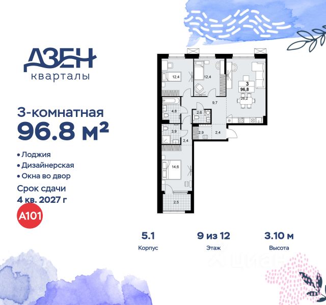 Продается 3-комн. квартира, с отделкой в ЖК "Новые Ватутинки. Квартал у реки". Общая площадь: 55.8 кв.м., жилая: 37.3 кв.м., площадь кухни: 4.3 кв.м. Этаж: 9. Район расположен всего в 14 километрах от МКАД по Калужскому шоссе, в центральной части Новой Москвы. Добраться сюда можно на автобусах и маршрутках от станций метро "Ольховая", "Теплый Стан" и "Бульвар Адмирала Ушакова". Время в пути от "Теплого Стана" и "Ольховой" занимает в среднем до 20 минут, даже в часы пик. В 2025 году рядом начнется строительство новой станции метро "Десна" (Троицкая линия), которая будет находиться в пешей доступности. Благодаря удачному расположению и развитой инфраструктуре Новые Ватутинки становятся одним из культурных и образовательных центров Новой Москвы. Строительство нового микрорайона началось с трех жилых корпусов, оснащенных подземными паркингами, индивидуальными кладовыми и коммерческими помещениями на первых этажах. Заречный имеет два удобных выезда на Калужское шоссе, что обеспечивает свободный проезд без заторов. В будущем жители также смогут пользоваться станцией метро "Десна", выбрав общественный транспорт. В районе предусмотрено строительство двух образовательных комплексов с детскими садами и школами, поликлиники и торгового центра Сквозь весь микрорайон — от будущей станции метро до набережной и парка "Андерсен" — протянется пешеходный бульвар длиной 1,5 км с уютными скверами, мини-площадями и садами. Архитектурная концепция предусматривает постепенное снижение этажности ближе к бульвару, создавая приятную для жизни и прогулок городскую среду. Принцип "город в гармонии с природой" реализован через дворы без машин и безбарьерное пространство на всей территории. Внутренние дворы будут предназначены для тихого отдыха и детских игр, а активные зоны разместятся на крупных плейхабах и в общественных пространствах. "Андерсен" станет центром активного досуга: здесь запланированы вело- и пешеходные маршруты, спортивные площадки, зоны для индивидуальных тренировок на свежем воздухе, а также места для рыбалки, сапбординга и тюбинга. Квартирный фонд отличается разнообразием планировок и продуманной эргономикой: просторные квартиры, большие лоджии, по две ванные комнаты. Свободные планировки позволят легко зонировать пространство под личные нужды — создать уютную спальню, рабочее место или гостиную. В цокольном этаже предусмотрены кладовые для хранения сезонных и крупных вещей, а также подземный паркинг с индивидуальными и семейными машино-местами. Спуститься к автомобилю можно прямо из квартиры — на лифте. Проект включает систему видеодомофонии: жители смогут получать уведомления о визитах гостей в режиме онлайн, открывать входную дверь удалённо, сохранять снимки с панели вызова, а также при желании — подключить наблюдение за камерами в лифтах через мобильное приложение. Выдача ключей в 2027г.