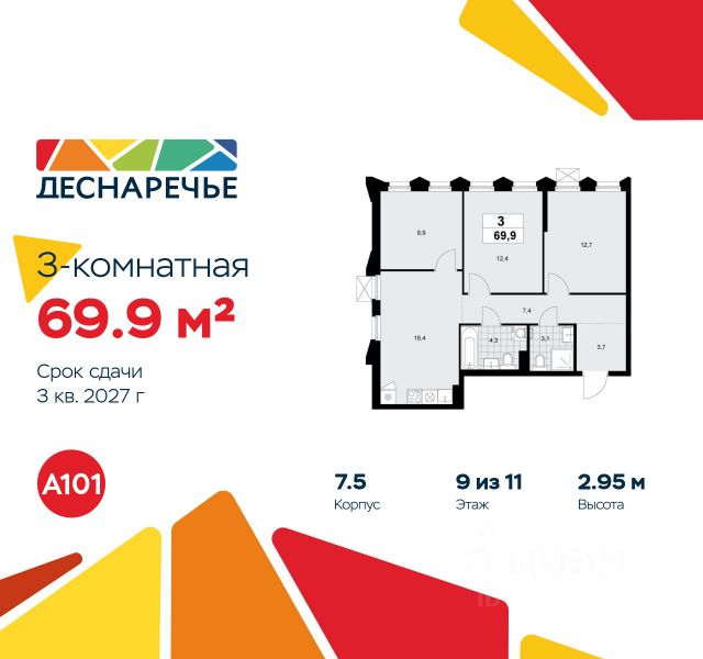Продаётся 3-комн. квартира площадью 86,5 кв.м на 9 этаже 16 этажного дома (Корпус 57.1, Секция 1) проекта ПИК Саларьево парк. Светлый просторный подъезд на уровне земли, функциональная планировка, большие окна, предчистовая отделка. Жилой район "Саларьево парк" расположен в Новой Москве, в четырёх километрах от МКАД по Киевскому шоссе. Две станции метро: "Саларьево" и "Филатов луг", — находятся в пешей доступности от проекта. Дойти до них можно за 510 минут. В квартале уже создана качественная среда, где есть абсолютно всё для полноценной жизни, работы и отдыха. Благодаря удобному расположению проекта всё важное будет рядом: детские сады, школы, кафе и рестораны, шопинг в торговых центрах, фитнес и даже аэропорт. Все корпуса в квартале гармонично сочетаются, образуя единую городскую среду. Между собой их объединяет невысокая этажность и натуральная цветовая гамма. Здесь приятно гулять и проводить время на улице всей семьёй. В "Саларьево парке" создана уникальная образовательная среда, включающая в себя шесть школ, рассчитанных на 6 250 учеников. Две из них уже открыты, их посещает 2 300 детей. Также на территории "Саларьево парка" находится 12 детских садов, один из которых с бассейном. Сейчас уже открыты 7 садов. В "Саларьево парке" открыта уникальная игровая площадка — PlayHub "Оригами". Здесь есть ручей, горка-труба и рельефные холмы. Взрослые смогут отдохнуть в уютном кафе, пока дети играют. Также на территории проекта есть SportHub — большая спортивная зона, разделённая по интересам и возрастам. Здесь можно заниматься разными видами спорта: футболом, баскетболом, волейболом и стритболом. Зимой центральную часть площадки превращают в каток. Во дворах-парках жилого квартала есть места для отдыха, детские и спортивные площадки. На первых этажах домов расположены магазины, кафе и полезные сервисы. Также вблизи проекта есть несколько масштабных торговых центров. До ТЦ "Саларис" пять минут пешком, до "Рио", Metro Cash & Carry и "Леруа Мерлен" — пять минут на автомобиле. Артикул 1019107 (Застройщик ООО "Специализированный Застройщик "Тирон")