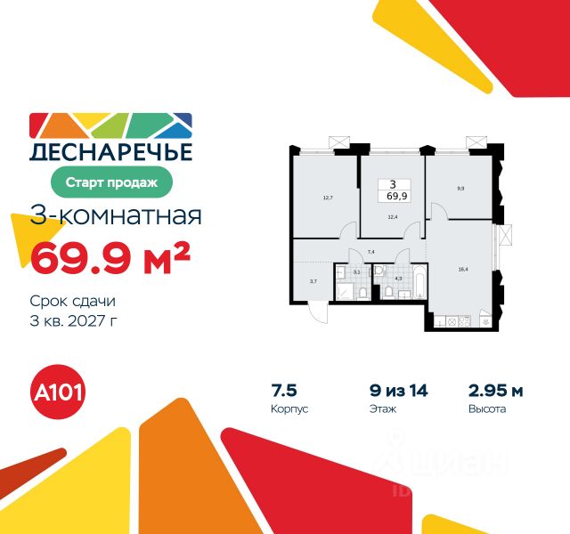 Продаётся 3-комн. квартира площадью 86,5 кв.м на 9 этаже 16 этажного дома (Корпус 57.1, Секция 1) проекта ПИК Саларьево парк. Светлый просторный подъезд на уровне земли, функциональная планировка, большие окна, предчистовая отделка. Жилой район "Саларьево парк" расположен в Новой Москве, в четырёх километрах от МКАД по Киевскому шоссе. Две станции метро: "Саларьево" и "Филатов луг", — находятся в пешей доступности от проекта. Дойти до них можно за 510 минут. В квартале уже создана качественная среда, где есть абсолютно всё для полноценной жизни, работы и отдыха. Благодаря удобному расположению проекта всё важное будет рядом: детские сады, школы, кафе и рестораны, шопинг в торговых центрах, фитнес и даже аэропорт. Все корпуса в квартале гармонично сочетаются, образуя единую городскую среду. Между собой их объединяет невысокая этажность и натуральная цветовая гамма. Здесь приятно гулять и проводить время на улице всей семьёй. В "Саларьево парке" создана уникальная образовательная среда, включающая в себя шесть школ, рассчитанных на 6 250 учеников. Две из них уже открыты, их посещает 2 300 детей. Также на территории "Саларьево парка" находится 12 детских садов, один из которых с бассейном. Сейчас уже открыты 7 садов. В "Саларьево парке" открыта уникальная игровая площадка — PlayHub "Оригами". Здесь есть ручей, горка-труба и рельефные холмы. Взрослые смогут отдохнуть в уютном кафе, пока дети играют. Также на территории проекта есть SportHub — большая спортивная зона, разделённая по интересам и возрастам. Здесь можно заниматься разными видами спорта: футболом, баскетболом, волейболом и стритболом. Зимой центральную часть площадки превращают в каток. Во дворах-парках жилого квартала есть места для отдыха, детские и спортивные площадки. На первых этажах домов расположены магазины, кафе и полезные сервисы. Также вблизи проекта есть несколько масштабных торговых центров. До ТЦ "Саларис" пять минут пешком, до "Рио", Metro Cash & Carry и "Леруа Мерлен" — пять минут на автомобиле. Артикул 1019107 (Застройщик ООО "Специализированный Застройщик "Тирон")