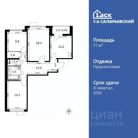 Продаётся 3-комн. квартира площадью 89,1 кв.м на 9 этаже 24 этажного дома (Корпус 82.8, Секция 8) проекта ПИК Саларьево парк. Светлый просторный подъезд на уровне земли, функциональная планировка, большие окна, c отделкой. Жилой район "Саларьево парк" расположен в Новой Москве, в четырёх километрах от МКАД по Киевскому шоссе. Две станции метро: "Саларьево" и "Филатов луг", — находятся в пешей доступности от проекта. Дойти до них можно за 510 минут. В квартале уже создана качественная среда, где есть абсолютно всё для полноценной жизни, работы и отдыха. Благодаря удобному расположению проекта всё важное будет рядом: детские сады, школы, кафе и рестораны, шопинг в торговых центрах, фитнес и даже аэропорт. Все корпуса в квартале гармонично сочетаются, образуя единую городскую среду. Между собой их объединяет невысокая этажность и натуральная цветовая гамма. Здесь приятно гулять и проводить время на улице всей семьёй. В "Саларьево парке" создана уникальная образовательная среда, включающая в себя шесть школ, рассчитанных на 6 250 учеников. Две из них уже открыты, их посещает 2 300 детей. Также на территории "Саларьево парка" находится 12 детских садов, один из которых с бассейном. Сейчас уже открыты 7 садов. В "Саларьево парке" открыта уникальная игровая площадка — PlayHub "Оригами". Здесь есть ручей, горка-труба и рельефные холмы. Взрослые смогут отдохнуть в уютном кафе, пока дети играют. Также на территории проекта есть SportHub — большая спортивная зона, разделённая по интересам и возрастам. Здесь можно заниматься разными видами спорта: футболом, баскетболом, волейболом и стритболом. Зимой центральную часть площадки превращают в каток. Во дворах-парках жилого квартала есть места для отдыха, детские и спортивные площадки. На первых этажах домов расположены магазины, кафе и полезные сервисы. Также вблизи проекта есть несколько масштабных торговых центров. До ТЦ "Саларис" пять минут пешком, до "Рио", Metro Cash & Carry и "Леруа Мерлен" — пять минут на автомобиле. Артикул 1033231 (Застройщик ООО "Специализированный Застройщик "Тирон")