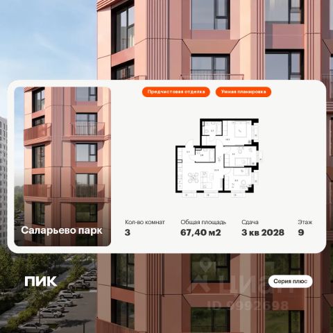 • ✓ В базе Циан 21 3-комнатных квартир на 9 этаже рядом с метро Саларьево