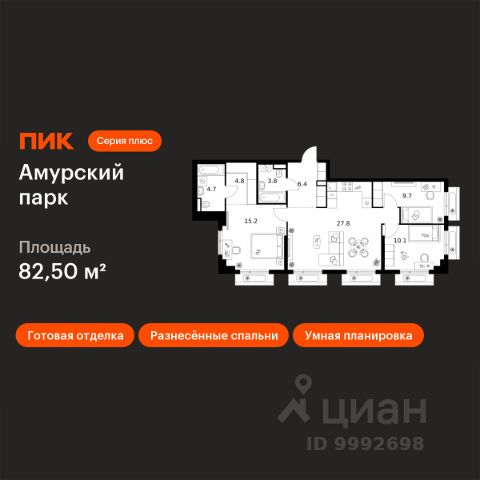 Продаётся 3-комн. квартира площадью 79,4 кв.м на 9 этаже 9 этажного дома (Корпус 1.6, Секция 6) проекта ПИК 2-й Иртышский. Светлый просторный подъезд на уровне земли, функциональная планировка, большие окна, c отделкой. "2-й Иртышский" возводится на востоке Москвы, между тремя станциями метро "Щелковская", "Черкизовская" и "Бульвар Рокоссовского". Проект включает жилые корпуса с индивидуальной архитектурой, школу и детский сад. Проект состоит из зданий разной высоты и разной по характеру архитектуры. Узнаваемой доминантой квартала станет башня из стекла и металла, напоминающая водопад. Квартал расположен в окружении нескольких знаковых рекреационных зон столицы. Вам понадобится всего несколько минут, чтобы оказаться в атмосфере спокойствия и слияния с природой. Всего 15 минут пешком, и вы в "Сиреневом саду", а дорога до национального парка "Лосиный остров" или Гольяновского пруда займёт 6 минут на авто. До Черкизовского детского парка и "Усадьбы Измайлово" можно доехать за 15 минут. До станции "Черкизовская" можно дойти пешком за 25 минут или доехать на общественном транспорте за 20. Дорога до станций "Бульвар Рокоссовского" и "Щёлковской" займёт 25 минут на общественном транспорте. Автомобилисты оценят удобные выезды на Щёлковское шоссе и СВХ. Путь до МКАД займет около 14 минут, до ТТК - 20. Артикул 988539 (Застройщик ООО "СЗ "Л-Девелопмент")