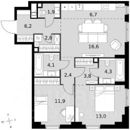Продажа 3-комнатных квартир на 9 этаже рядом с метро Шелепиха (Большая кольцевая линия)