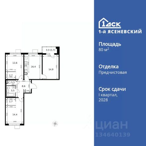 ТОЛЬКО 4 ДНЯ ДО 10.02 • Дополнительная скидка 10% • Ставка 10% по стандартной ипотеке для всех без наценок • Ставка 3,5% по семейной ипотеке Успейте купить выгодно! Прямая продажа от застройщика! Жилой Комплекс класса Комфорт Плюс. Продаётся 3-к квартира номер 377 общей площадью 78.9 кв.м. на 9-м этаже 9 этажного здания. Отделка Whitebox. Цена с учётом скидки. Особенности квартиры: - Квартиры рядом с метро - м. Корниловская 9 мин пешком - 63 га лесопарка за окнами - Школа c it-кластером и бассейном. 2 детских сада - Мастер-зона с гардеробной. Просторное место для отдыха и удобного хранения вещей. - Просторная спальня, в которой можно разместить большую кровать. - Распашная планировка - отличное сочетание удобства и свободы. - Гостевой санузел - комфорт и удобство для ваших гостей. - Увеличенная высота потолков - ощущение простора и легкости. - Просторная кухня - место для семейных ужинов и кулинарных экспериментов. - Линейная кухня - функциональность и практичность в одном решении. - Гардеробная - удобство для хранения и организации вещей. - Ниша под шкаф - компактное и удобное место для вещей. - Лоджия - уютное место для отдыха и тишины. Квартира с предчистовой отделкой (White box). Вам не придется заниматься черновыми и трудоёмкими работы, а чистовую отделку и дизайн - сделайте на свой вкус. Информация о комплексе: В жилом комплексе комфорт-плюс класса "1-го Ясеневского" доступны преимущества двух стилей жизни. Ведь в пешей доступности метро, школа с 25-метровым бассейном и IT-кластером и при этом целых 63 га благоустроенного Троицкого лесопарка под окнами, где так приятно дышать свежим воздухом и слушать пение птиц. Собственная закрытая территория "1-го Ясеневского" представляет собой уютный оазис. Здесь и зеленый освещенный бульвар для прогулок, система велодорожек, маленькая городская площадь, кафе, пекарни и кофе поинты. А еще дворы без машин и многоэтажная парковка. Изюминка территории - фруктовые деревья во дворах и городские сады. "1-й Ясеневский" - всего в 1 км от МКАД, на территории новой Москвы. Жилой комплекс, где есть все необходимое для современного человека. Транспортная доступность: До метро "Корниловская" - 12 минут пешком До метро "Тютчевская" - 25 минут пешком До метро "Теплый стан" - 10 минут на транспорте До метро "Ольховая" - 30 минут на общественном транспорте Личный автотранспорт: Выезд на Калужское шоссе - 500 м МКАД - 1 км Внутренняя инфраструктура: ЖК "1-й Ясеневский" можно назвать идеальным местом для жизни семьи с детьми. Здесь буквально за домом находится Троицкий лесопарк - излюбленное место прогулок молодых родителей. А во внутренних дворах под детские площадки выделены специальные зоны. Они оборудованы всем, что нужно для счастливого детства: современными и максимально безопасными качелями, песочницами и лазалками. Оборудование и игровые сценарии на детских площадках спроектированы вместе с командой детских психологов для правильного развития ребенка и для пов