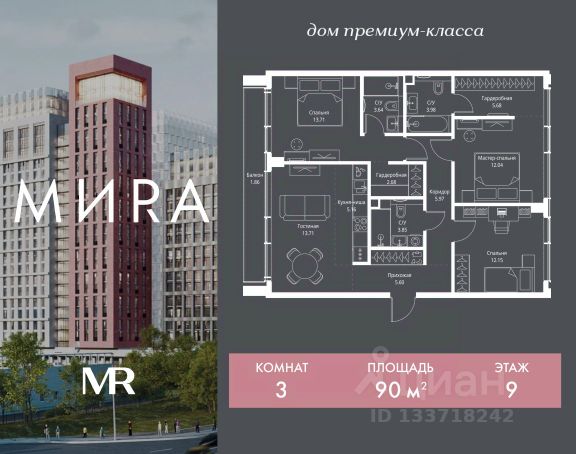 Продаётся 3-комнатная квартира общей площадью 109.60 кв. м на 9 этаже жилого квартала бизнес-класса iLove. Квартиру отличает продуманная планировка с просторными спальнями и кухней-гостиной. В квартире предусмотрены 2 больших санузла, вместительная гардеробная и помещения под кладовую и постирочную. В холле также предусмотрена ниша для гардеробной. Окна в квартире широкоформатные, выходят на тихий и зеленый внутренний двор, не оборудованный зонами для активного отдыха. Квартира продается без отделки. Жилой квартал iLove расположен в тихом зеленом районе Останкино. До метро "Алексеевская" всего 10 минут пешком, а на автомобиле можно добраться до ТТК за 6 минут. iLove состоит из 5 корпусов переменной этажности, каждый корпус которых имеет вертикальные высотные и среднеэтажные горизонтальные фасады. Из окон большинства квартир открываются прекрасные виды на Останкино. Для удобства жильцов предусмотрены подземная и гостевая парковки, а внутренняя территория комплекса свободна от машин. Благоустроенный двор с детскими и спортивными площадками и дизайнерский подъезд с панорамными окнами создают приятную атмосферу для жизни. В проекте реализуется концепция "город в городе" вся необходимая инфраструктура расположена на первых этажах зданий, запроектирован комьюнити-центр (общественное пространство для отдыха и досуга жителей квартала). В 2025 году на территории жилого комплекса запланировано открытие детского сада. В пешей доступности находятся продуктовые магазины, кафе и рестораны, школы и поликлиники. В ближайшем окружении крупные парки ВДНХ, парк "Останкино", Ботанический сад, Сокольники.