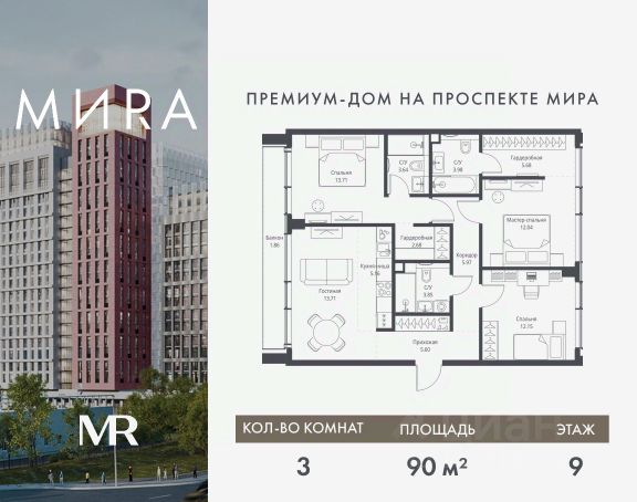 Прямая продажа от застройщика. Продаётся 3-комнатная квартира общей площадью 91.90 м² без отделки в доме премиум-класса МИRА на 9-м этаже 17 этажного дома. Квартира расположена в корпусе 1. Дом премиум-класса МИRA это: • Спокойный район с богатой историей и сложившейся инфраструктурой • Авторская архитектура на стыке классики и современности • Вход в парк прямо из жилого комплекса • Панорамные виды на Яузу, парки, ВДНХ и скульптуру "Рабочий и колхозница" • Удобные сервисы и безопасность для каждого резидента Расположение: Жилой квартал расположен в Алексеевском районе на северо-востоке Москвы, на второй линии домов, таким образом вы сможете дистанцироваться от шума и суеты проспекта Мира, но при этом будете жить недалеко от этой важной городской магистрали. Прямо у дома: • Парк Акведук • Река Яуза • Памятник "Рабочий и колхозница" Пешком: • 16 мин м. ВДНХ На автомобиле: • 12 мин ТТК • 15 мин Садовое кольцо • 12 мин Национальный парк "Лосиный остров" Благоустройство: Концепция благоустройства от бюро "ДРУЖБА" разработана в стиле "Лесная тропа". В уютном дворе расположились словно затерянные в лесу, площадки для отдыха. Они разделяются островками с травами, кустарниками, крупными камнями и деревьями, между которыми проходят узкие песчаные тропинки с деликатной подсветкой по вечерам. Центральной точкой притяжения для жителей станет главная площадь с фонтаном, которая открывается сразу из двух входных групп. Внутренний двор МИRA: • Детская площадка с зонами для игр малышей до трех лет и детей более старшего возраста • Спортивная площадка с профессиональным оборудованием для тренировок • Декоративные перголы • Воздушный арт-объект с подсветкой, похожий на облако • Чайный домик, где в отдельном отапливаемом павильоне можно в любое время года попить кофе с соседями или устроить камерное семейное чаепитие • Зоны для работы и отдыха с гамаком под навесом, скамейками и креслами Инфраструктура и окружение: В Алексеевском районе есть огромные благоустроенные парки, магазины, гимназии с высоким рейтингом и филиалы ВУЗов, частные и государственные детские сады, модные кофейни и фитнес-центры. В квартале МИRА предусмотрены: • 2 ресторана с видом на парк Акведук • 3 кафе • фитнес-студия • подземный паркинг на 330 машино-мест Компания MR предлагает своим клиентам специальные условия приобретения квартир в рамках программ ипотечного кредитования от банков-партнеров.
