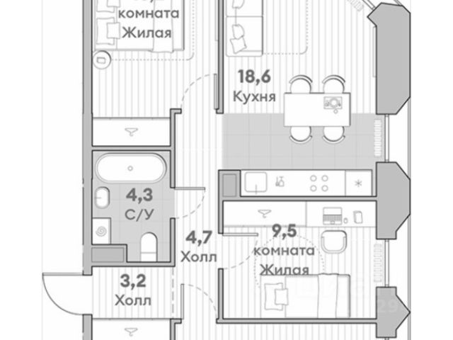 О квартире Продаётся 3-комнатная квартира общей площадью 83.1 кв.м. без отделки. Квартира расположена на 9 этаже корпуса 5.7 в жилом комплексе бизнес-класса "Среда на Лобачевского" в пешей доступности от метро "Аминьевская". О жилом комплексе "Среда на Лобачевского" полностью соответствует критериям современного жилого пространства. Взяв за основу рациональный подход, мы гармонично соединили дизайн, актуальные тренды и функциональность. Продуманный современный экстерьер и функциональные планировки внутри, приватные пространства и разнообразные досуговые зоны для каждого члена семьи — все это "Среда на Лобачевского". Инфраструктура Район отлично развит и наполнен жизнью, здесь уже есть вся необходимая инфраструктура — детские сады, школы, медучреждения, торговые центры, благоустроены парки для прогулок и отдыха, удобен и легкодоступен городской транспорт. Рядом расположены учебные корпуса крупных университетов — МГУ, МГИМО и РАНХиГС. Школы и детские сады в районе занимают высокие позиции в городских рейтингах, поэтому вам не придется беспокоиться о качестве образования детей. Как и об отдыхе: поблизости расположены живописные пруды, реки и парки. Это Парк Олимпийской деревни, Парк имени 50-летия Октября, Мещерский парк и Очаковские пруды. Теперь поставить галочки в еженедельном чек-листе "спорт-прогулки-встречи с друзьями" можно, не покидая любимый район. Особенности Особое внимание в проекте уделяется созданию функциональных пространств не только внутри дома, но и за его пределами. В ландшафтном парке "Среды на Лобачевского" расположены крытые зоны для спокойного времяпровождения, места для активного отдыха и спорта, коворкинг, соседский комьюнити-центр, водные объекты. —Ландшафтный парк во дворе. —Водный сад с зонами отдыха. —Зоны коворкинга. —Дизайнерские гранд-лобби. —Бесключевой доступ. —Подземный паркинг.