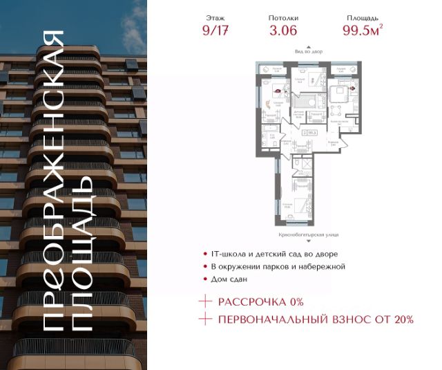 Функциональная планировка: кухня-гостиная 15,4 кв.м, гостевой санузел, гардеробная, мастер-спальня 11,4 кв.м c гардеробом и ванной комнатой, спальня с рабочей зоной, угловым остеклением и выходом на лоджию. В квартире 5 окон, высокие потолки 3.25 метра, благодаря чему пространство наполняется естественным светом.