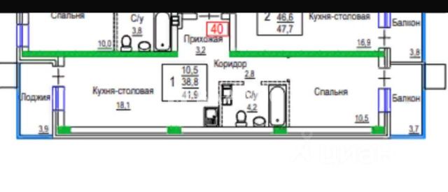 - Утеплённая лоджия 7,4 м² с двумя выходами из кухни и комнаты (ранее использовалась как кухня);