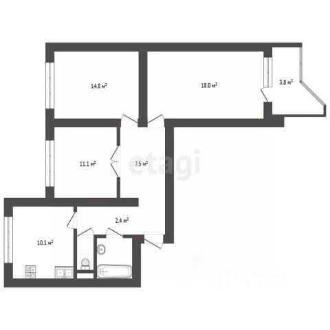 жилая площадь составляет 45.2 кв. м, большая кухня - 10.1 кв. м, и три изолированные комнаты ( 20-14,1-11,1), общая площадь с балконом 75 кВ. м.