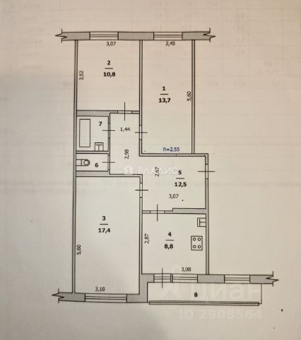 Квартира расположена на 4-м этаже 5-ти этажного кирпичного дома.