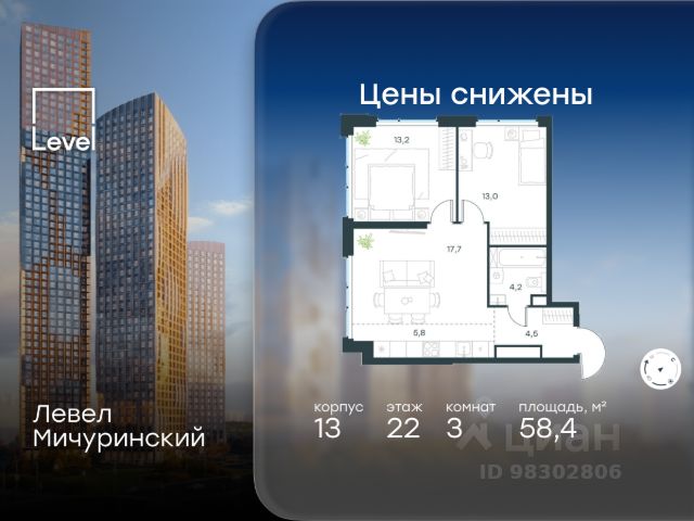 В продаже 3-к квартира от застройщика. Общая площадь 100.80, жилая 44.90, кухня 24.3. Квартира расположена на 8 этаже жилого квартала "Событие-6", корпус 1, Секция 1. Квартира без отделки. Срок сдачи: 4 кв. 2029 года. СОБЫТИЕ.6 — финальный дом парк-квартала СОБЫТИЕ на Мосфильмовской. Переезжайте в уже сформированный квартал с готовой инфраструктурой и парком! Премиальный жилой комплекс в престижном районе Москвы предлагает стильную архитектуру, продуманное благоустройство и великолепно разнообразие общественных пространств. Свой парк прямо возле дома! Архитектура Архитектура СОБЫТИЯ.6 выполнена в ультрасовременном стиле московским бюро Atrium на основе дизайн-кода британских архитекторов LDA Design и UHA London. Дом отличает оригинальная геометрия фасадов, большое остекление и высокие лобби (до 6,2 м) с авторской мебелью и светильниками. Расположение Мосфильмовская улица (Раменки) — один из престижных районов Москвы. Близость к историческому и деловому центру, природным зонам Запада столицы. Транспортная доступность: • 10 мин до Москва-Сити и ТТК; • 15 мин до Садового кольца; • 25 мин до аэропорта Внуково; • 7-10 мин до станций метро "Аминьевская" и "Мичуринский проспект". Инфраструктура: • парк "Событие" (12 га, финалист конкурса Правительства Москвы) с беговыми (1,5 км) и велодорожками (2,7 км), экотропой (1,6 км), площадками, лекторием; • школа, детский сад, магазины, салоны красоты, рестораны (к моменту заселения); • мультидвор с игровыми и спортивными площадками, мини-бульваром; • общественная терраса на 10-м этаже (коворкинг, лаунж); • Закрытые общественные пространства: детская комната, спортивный зал, коворкинг, лаунж-зоны. Паркинг 256 мест для жителей (48 — для электромобилей), 24 гостевых (5 — для электромобилей), мойки колес, кладовые, зоны для велосипедов. Окружение Парки и заповедники (Воробьёвы горы, Матвеевский лес и др.), МГУ, театр им. Н. И. Сац, стадион "Лужники". Безопасность Видеонаблюдение, контроль доступа, видеодомофоны, консьерж-сервис 24/7, системы пожарной безопасности и мультисервисная оптическая сеть.