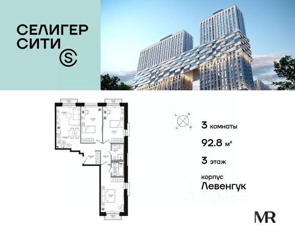 Прямая продажа от застройщика. Продаётся 3-комнатная квартира общей площадью 109.90 м² с предчистовой отделкой в ЖК "Селигер Сити" на 39-м этаже башни Лисицкого. Корпуса четвертой очереди ЖК "Селигер сити" названы в честь трех великих представителей науки и архитектуры, новаторское видение которых — слишком смелое для своего времени — нашло воплощение в уникальных домах жилого комплекса. Вдохновленные авангардными идеями знаменитого советского архитектора Эля Лисицкого, архитекторы создали яркий центр притяжения всего района, задающий новый стандарт жизни в современном мегаполисе — две высокие "Башни Лисицкого" с современной интерпретацией горизонтального небоскреба. Преимущества проекта: - 2 минуты пешком от метро "Селигерская" - Архитектурное решение от голландского бюро MLA + - Одна из самых больших придомовых территорий в Москве - Огороженная охраняемая территория, круглосуточное видеонаблюдение - Европейский подход к благоустройству от бюро Wowhaus: появится парадный бульвар, аллея с фонтаном и арт-объектом, что дополнит уже сформированное благоустройство: детские площадки для разных возрастов, площадки для воркаута, дорожки для бега и пеших прогулок, места для отдыха - Два детских сада, школа начальных классов и центр доп.образования - Искусственный пруд на территории комплекса с благоустроенной набережной и мостом - Продуманная концепция инфраструктуры: уютные кафе и рестораны, супермаркет, магазин фермерских продуктов, бытовые службы, салон красоты, детские сады - Ультрасовременные инженерные решения - Подземный паркинг с зарядными станциями для электромобилей, постами подкачки шин и келлерами - Лобби по индивидуальному дизайн проекту от европейского бюро Вlank Architects: лаунж-зоны, ресепшен, колясочная, помещение для мытья лап животным после прогулки - Надежный девелопер с опытом премиальных проектов MR Расположение комплекса: - 2 минуты от станции метро "Селигерская" - 7 минут на машине до станции метро "Окружная" - Предусмотрен удобный выезд в сторону ТТК (всего 9 км или 15 минут без пробок) - МКАД в 10 минутах на машине Компания MR предлагает своим клиентам специальные условия приобретения квартир в рамках программ ипотечного кредитования от банков-партнеров.