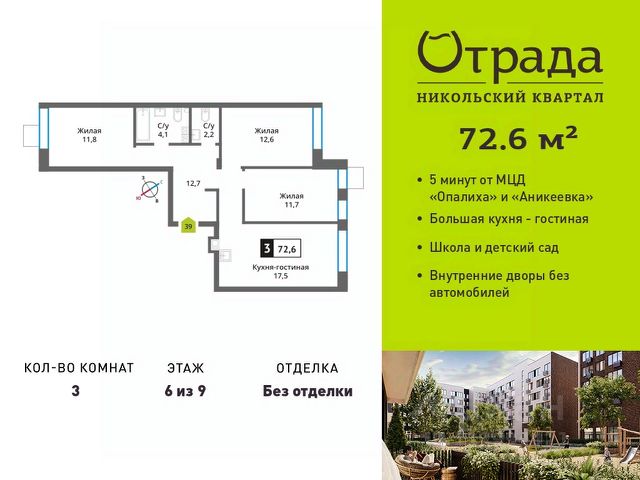 Старт продаж! Продается 3-комнатная квартира в новом клубном жилом комплексе "Павлово 3" площадью - 60.30 кв. м на 1 этаже, в корпусе 1 в малоэтажном монолитном доме от компании-застройщика. Квартира с угловым остеклением. Из окон, а также с балкона, открывается отличный вид. В квартире высокие потолки 3.4 м, что дает ощущение простора. Преимуществом также является большой санузел. "Павлово 3" - премиальный уровень комфорта загородной жизни в бизнес-классе. Выбирайте камерный квартал, он станет лучшим домом для каждого, кто ценит приватность и комфорт. Срок сдачи - 2 квартал 2027. Более подробная информация по телефону. Особенности комплекса: • Высота потолков в каждой квартире - от 3 метров; • Собственный детский сад; • Авторская концепция озеленения; • МЦД-2 "Нахабино" в 5 минутах езды; • Садовое кольцо в 35 минутах езды • Локация с насыщенной инфраструктурой столичного уровня: торговые центры, кафе, рестораны, учебные заведения, развлекательные и спортивные объекты. Расположение Клубный жилой комплекс бизнес-класса "Павлово 3" возводится в экологически чистом районе престижного северо-западного направления Москвы. Здесь природа и атмосфера спокойствия соседствуют с комфортом современного мегаполиса. 7 трехэтажных корпусов, выполненных в едином современном стиле, формируют уютную камерную атмосферу. Архитектура На первых этажах домов - просторные и функциональные входные группы, где предусмотрено все: мягкий интерьер в природных тонах, дизайнерская отделка натуральным деревом и камнем, панорамные окна с видом на лес, помещения для хранения колясок и спортивного инвентаря, а также специальные подъемники для маломобильных жителей. Благоустройство "Павлово 3" - это 6 га приватной охраняемой территории, 2 км прогулочных дорожек вдоль леса, 19 зон для тихого и активного отдыха и 3963 деревьев и цветущих кустарников, высаженных непосредственно на территории комплекса. Чтобы оказаться наедине с природой теперь достаточно пары минут пешком. Для жителей "Павлово 3" создан собственный выход в лес, благоустроены лаунж-зоны на свежем воздухе и гармонично вписаны в ландшафт ливневые сады. Здесь же появится барбекю-зона для уютных вечеров в кругу семьи и друзей. Инфраструктура Жителям доступна инфраструктура престижного района с известными ресторанами, спортивными клубами и рейтинговыми учебными заведениями. На территории клубного дома детям не придется скучать. В их распоряжении - 16 игровых площадок с инвентарем из природных безопасных материалов. А для поддержания здорового образа жизни предусмотрено 5 спортивных зон, включая воркаут-тренажеры, корты для мини-футбола, волейбола, падел-тенниса и баскетбола. Для гостей предусмотрен свой паркинг, а для владельцев электромобилей - зарядные станции. Количество машиномест равно количеству квартир. Вся территория оснащена системами безопасности и камерами видеонаблюдения, работает WI-FI.