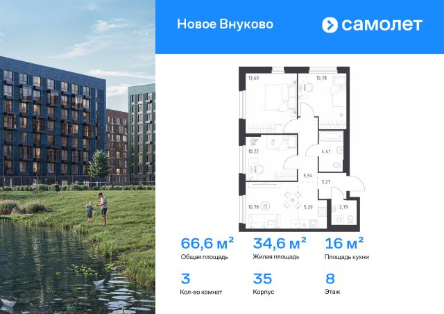 Продается видовая квартира (площадь - 85.90 кв. м., комнат - 3, этаж 2) в клубном поселке премиум-класса Vnukovo Country Club. Комплекс расположен на Западе Москвы в экологически-чистом районе в окружении Ульяновского и Валуевского лесопарков. 30 Га зеленой территории с ландшафтным дизайном, пешеходными и вело-маршрутами, озером и рекой. На закрытой территории комплекса более 10 объектов собственной инфраструктуры: * Подогреваемый открытый и крытый бассейны; * Многофункциональный спортивный комплекс с более 20 видами спорта; СПА-центр; Школа, детский сад, более 40 различных кружков и секций; Досуговый центр с коворкингом, библиотекой и кинозалом Семейный ресторан VESNA с приватным клабхаусом для работы, отдыха и общения резидентов жилого комплекса * Торговая галерея с премиальным супермаркетом, пекарней, аптекой и химчисткой * Приватный парк с лаунж-зонами и др. Уникальной особенностью комплекса является вертикальное озеленение фасадов и просторные видовые террасы. Квартиры во Vnukovo Country Club предлагаются с различными вариантами отделки и без нее, а также доступна опция полной меблировки - такие квартиры полностью готовы к проживанию. Расположение: * 5 мин. до МЦД-4 "Санино"; * 15 мин. до аэропорта "Внуково"; * 20 мин. до МКАД по Киевскому шоссе; * 35 мин. до "Москва-Сити" За подробной консультацией обращайтесь по телефону.