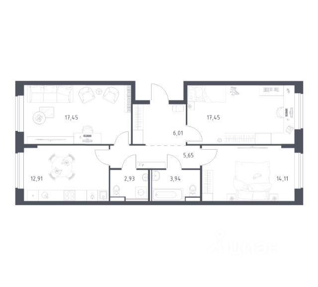 В продаже 3-комнатная квартира в корпусе 6.2 ЖК 'Томилино Парк'. Квартира располагается на 17 этаже, общая площадь 69.0 м2.