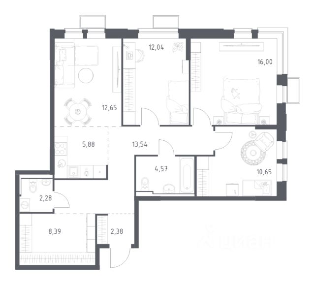 В продаже 3-комнатная квартира в корпусе 3.3 ЖК 'Егорово Парк'. Квартира располагается на 4 этаже, общая площадь 88.38 м2.