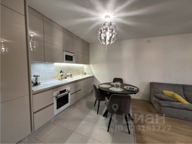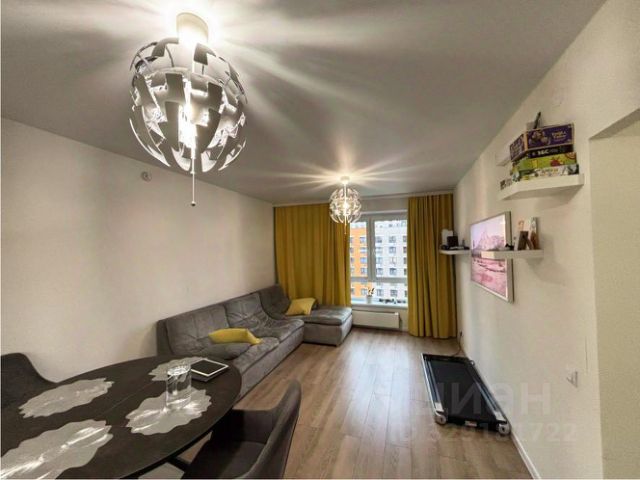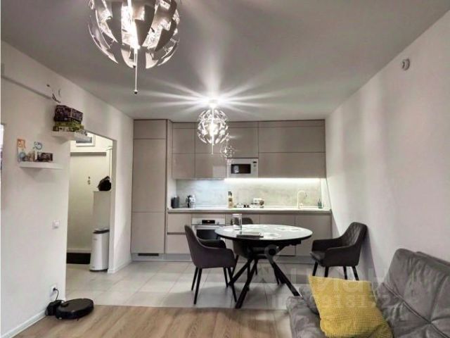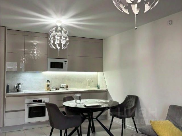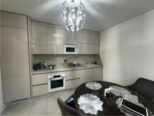 Общая площадь квартиры 59,9 кв.м. Площадь кухни-гостиной 21,3 кв. м, из них площадь гостиной 13 кв. м, а собственно кухни 8,3 кв. м. В зоне кухни: встроенная кухонная мебель с электроплитой с духовой печью, холодильником, микроволновой печью, посудомоечной машиной и вытяжкой. Две жилые комнаты площадью 11,33 кв. м. и 12 кв. м. Просторный холл площадью 9,5 кв. м. Два санузла. Панорамные окна, за каждым из которых расположены фасадные корзины для кондиционеров. Помимо всей мебели на кухне, покупателю остаются телевизор Samsung, стиральная машина со встроенной сушкой, мебель в детской комнате, спальне и в холле. Окна выходят во двор, на юго-запад-запад. В квартире всегда много естественного света, а по вечерам виден закат.