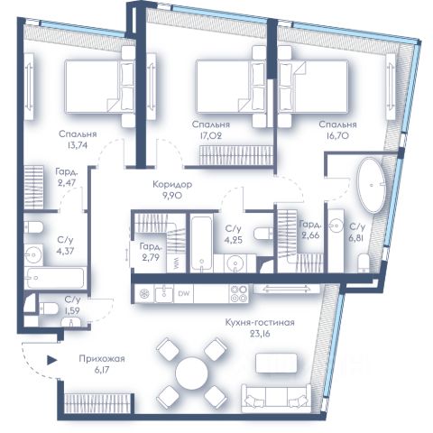 Старт продаж! Квартиры в Москва-Сити в самой инновационной башне Оне. В продаже 3-комнатная квартира площадью 107.70 м² на 60-м этаже. Новый современный жилой комплекс премиум-класса Оне расположен в самом сердце деловой жизни столицы — в Москва-Сити, где захватывающая дух архитектура встречается с безупречным уровнем комфорта. Оне находится в Пресненском районе, в пешей доступности от станции метро "Деловой центр". Проект был разработан выдающимся архитектором Сергеем Кузнецовым при участии международного бюро Gensler. Уникальная скульптурная форма башни, вдохновленная лентой Мебиуса, создает новый узнаваемый силуэт делового центра и задает непревзойденный стандарт вертикальной жизни. По замыслу архитекторов, жилой комплекс представляет собой две вертикальные башни, соединенные в нижней и верхней точках. На 85 этаже расположен Sky Garden — самый высокий в Европе парк с оазисом природы и секретным садом в облаках, а на 83 этаже парит стеклянный мост Sky Bridge с панорамными видами. Важнейшей особенностью комплекса является его всесторонняя инфраструктура по принципу All-in-Оне: закрытый клуб с лаунжами, приватным кинотеатром, бильярдной, рабочими зонами и фитнесом. Здесь же расположена торговая галерея бутиков и премиальный гастро-кластер, концепцию которого разработал известный ресторатор Александр Сысоев. Особенности комплекса: - Эксклюзивная архитектура от главного архитектора Москвы - Самый высокий в Европе небесный сад Sky Garden на 85 этаже - Панорамное остекление от пола до потолка во всех квартирах - Smart-инженерия и сервис уровня пятизвездочного отеля - Приватная клубная инфраструктура All-in-Оне - Трехуровневый паркинг с зарядными станциями для электрокаров - Круглосуточная безопасность и консьерж-сервис Расположение комплекса: - Пешая доступность от станции метро "Деловой центр" - 2 минуты до Экспоцентра - 5 минут до Дома Правительства - 7 минут до Кутузовского проспекта