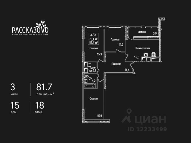Продается 3-комнатная квартира в ЖК Рассказово на 15 этаже. Общая площадь квартиры составляет 74,4 кв.м. Квартира без отделки. Уникальность комплекса в его архитектуре все дома построены в стиле Москвы 30-х годов, создавая неповторимое ощущение присутствия романтики того времени. Роскошные входные группы, отделанные мрамором, с высотой потолков 4,5 м, белыми лепными карнизами и стойкой ресепшн с авторской отделкой создают атмосферу уюта, полностью отражая дух и воплощение уникальной архитектурной концепции 30-40 годов, являясь ее логическим продолжением. Преимущество локации заключается в благоприятной экологической обстановке с трех сторон комплекс окружен Ульяновским лесопарком и отсутствием промышленных предприятий, обеспечивая жителей чистым воздухом. До ближайшей станции метро "Рассказовка" всего 850 метров, а до центра можно доехать за 30 минут. Проект предполагает комплексное освоение территории, создание комфортной жилой застройки с развитой качественной инфраструктурой: - большое количество парковочных мест предусмотрены как закрытые подземные паркинги, так и крытые наземные парковки с дополнительно выделенными открытыми парковочными местами возле домов; - круглосуточно охраняемая территория, закрытая от посторонних для безопасности каждого жителя; - двор-парк без машин, где можно не переживать за играющих детей; - социальные объекты: своя поликлиника, детские сады и школы; - здоровая среда: воркаут - площадки, обустроенные места для занятий спортом на свежем воздухе, живописные места для утренних пробежек, велосипедные маршруты любой сложности; - благоустроенная набережная лесного озера для тихих прогулок или семейного отдыха; - коммерческие объекты действующие магазины, кафе и салоны красоты. Узнайте больше о комплексе приезжайте на просмотр, записавшись по телефону. Менеджер вас встретит, угостит вкусным кофе, проведет по территории и покажет квартиру. Продам 3-комнатную квартиру в ипотеку в поселении Внуковское в Москве.