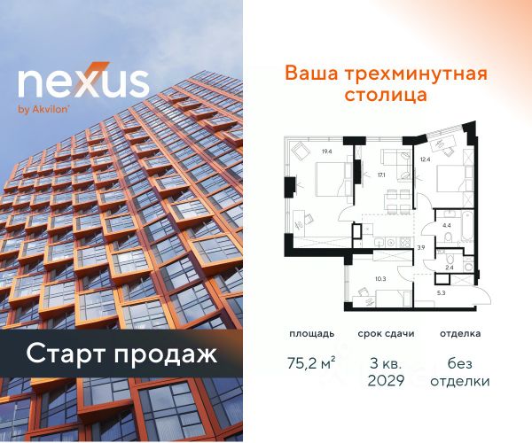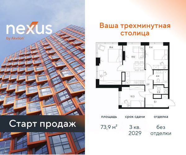 Продажа от застройщика. О проекте: В основе NEXUS by Akvilon лежит принцип трехминутного города, где вся жизнь: работа, отдых, здоровье, общение и культура сосредоточены в шаговой доступности. Он не просто экономит время, а кардинально перераспределяет его. В этих условиях главным логистическим узлом становится лифт, который в считанные секунды переносит из квартиры в собственный фитнес-рум, панорамный двор или современный коворкинг. Здесь вы сами решаете: оказаться в эпицентре событий, чувствуя пульс мегаполиса, или наслаждаться тишиной и приватностью своего пространства. И главное — вы можете переключаться, находя идеальный баланс каждый день. NEXUS by Akvilon - ваша трехминутная столица! Транспортная доступность NEXUS дарит независимость от расстояний и логистики. Ваше время теперь принадлежит только вам меньше минуты до метро Молодежная 2 минуты до Рублевского шоссе 10 минут до Проспекта Багратиона 15 минут до Москва-Сити 10 минут до МКАД 20 минут до ТТК Архитектура 46-этажная башня станет новой архитектурной доминантой, символизирующей динамику и технологичность современной жизни.Комбинация алюминиевых кассет, стеклофибробетона и витражного остекления фасада создает монументальную оболочку, а теплая цветовая гамма добавляет масштабной форме визуальной теплоты. Три разных по характеру стороны башни — от строгой "зубчатой" геометрии до живописных эркеров — создают многогранный, ритмичный образ, дополняемый невесомыми балконами со стеклянным ограждением. Архитектура проекта живет в диалоге с городом: променад вдоль парящего стилобата со стрит-ретейлом становится естественным продолжением общественного пространства. Планировки в концепции Разумные метры Мы создали квартиры, где пространство работает на ваш комфорт. В основе концепции "Разумные метры" правильная геометрия помещений и тщательно продуманные эргономичные решения. - Высота потолков до 3,55 метров - Многообразие планировок: от студий до четырехкомнатных квартир классического и евро-формата - Многофункциональные пространства: кухни-гостиные для приема гостей и зонированные мастер-спальни - Продуманная инфраструктура быта: отдельные постирочные и гостевые санузлы - Удобные системы хранения: встроенные ниши и гардеробные зоны - Уникальные форматы: пентхаусы, комнаты с двумя окнами, угловое панорамное остекление - Возможность открытия окон на всех высотах Для студий и однокомнатных квартир мы предлагаем готовое решение — отделку White box, позволяющую сразу приступить к чистовому ремонту на ваш вкус. Для остальных планировок предусмотрена черновая отделка, чтобы воплотить все интерьерные пожелания. Здесь пространство адаптируется под ваш образ жизни, а не вы подстраиваетесь под планировку. Приватное благоустройство Скрытый на виду панорамный двор-терраса, расположенный на высоте 7 метров, объединил внутреннюю камерность и внешнюю динамику городской жизни. - Многоуровневое озеленение с всесезонными композициями, сохраняющими декоративно