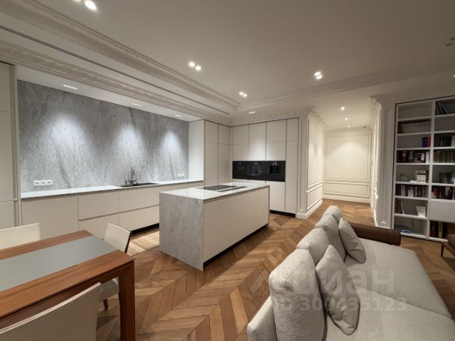 Marquina Nero, созданный лучшими итальянскими мастерами. Гипсовая лепнина, была привезена из Франции. Дизайнерская мебель в гостиной, созданная без преувеличения великим мастером пропорций Антонио Читтерио (Antonio Citterio). Эта коллекция носит название Atoll и ассоциируется с коралловыми островами, отдыхом и расслаблением. Диван Atoll, дизайн Антонио Читтерио, B&B Italia. Библиотека, Poliform. Утонченные люстры из латуни и выдувного стекла, композиция журнальных столиков, все вместе создает модное эклектичное настроение. Белые стены с изящным лепным декором служат прекрасным фоном для современных предметов дизайна. Кухня, дизайн Карло Коломбо, Poliform. Фартук и столешница натуральный редкий мрамор Carrara. Вся техника на кухне Gaggenau ,винный шкаф Miele. Ванная комната. Мебель, Milldue S.p.A. Смесители, Axor. Бра, Baxter, стиральная и сушильные машины Miele. Натуральный мрамор Calacatta Caldia и Bianco Zacinto. Стены и фасады мебели в санузлах отделаны натуральным мрамором с очень живописным рисунком. Минималистичная сантехника в теплом золотистом цвете металла добавляет солнечного настроения, а большие зеркала увеличивают пространство. Обе гардеробные комнаты от Poliform. Основная спальня -Мебель, Maxalto. Светильники, CTO Lighting и Baxter. Портьеры, Houles и Rubelli. Мебель, Maxalto. Гипсовые карнизы сложной лепной работы были привезены из Франции. Фасады светлых шкафов - Poliform в зоне прихожей имеют высококачественную ламинированную отделку, которую невозможно отличить от натуральной кожи, что делает интерьер мягким и уютным. Зеркало, Antonio Lupi. Крючки для одежды и сумок сделаны из мрамора , Двери Rimadesio. Паркет, Mogentale. В доме имеется фитнес клуб Eywa Wellness Club , салон красоты, рестораны, бутик одежды. Рядом Набережная Москва-Реки. В подземном паркинге имеется удобное машино место и кладовка. Торг реальному покупателю!