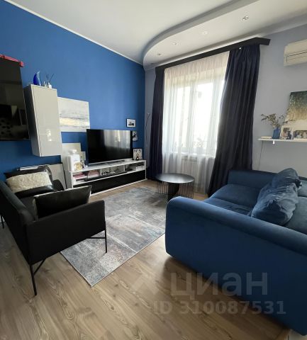 В квартире: холл 6 м2 с зеркальным шкафом; зал 30 м2 ; две спальни - 14,8 м2 и 17 м2 ; кухня с панорамными окнами 19,5 м2 ; два полноценных сан/узла - 4,2 и 6,7 м2 ; гардеробная 9 м2 ; балкон 8,5 м2. Высота потолков в квартире 3 м.