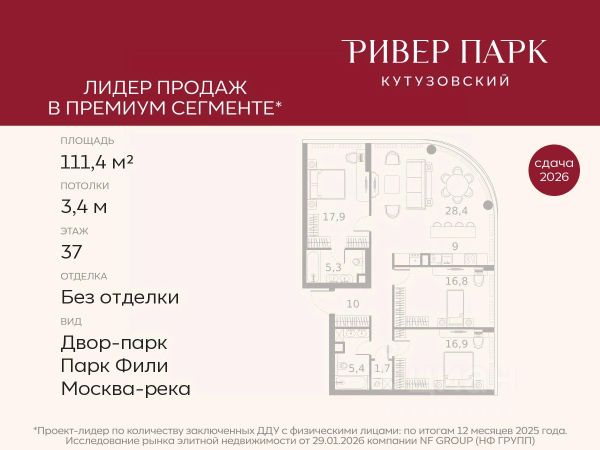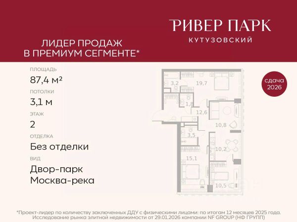 Продается 3-к квартира площадью 88.8 кв.м. на 7-м этаже в жилом комплексе премиум-класса Ривер Парк Кутузовский в Башне Топаз Премиальный жилой комплекс Ривер Парк Кутузовский строится в одном из самых престижных районов столицы Дорогомилово, на берегу Москвы-реки с лучшими видами на Москва-Сити. Яркий проект в стиле эко-футуризма станет самым масштабным и самым высотным ЖК в локации Кутузовского проспекта. Расположение и Транспортная доступность: • На берегу Москвы-реки, напротив Москва-Сити • 600 метров до Кутузовского проспекта • Удобный съезд с ТТК • Прямой выезд на МКАД по Проспекту Багратиона. • В пешей доступности 3 станции метро: Фили, Парк Победы, Кутузовская, а также станция МЦД Фили. Архитектура от именитого бюро ADM отличается уникальной пластикой фасадов - башни словно парят в воздухе, играя гранями как драгоценные камни. Жилой комплекс состоит из 5-ти небоскребов с приватным парком 2 Га и внешней торговой галереей с открытым доступом. В закрытом внутреннем дворе уникальная по насыщенности клубная инфраструктура только для жителей: • Площадка Мультиспорт (баскетбол, футбол, воллейбол, большой теннис) • Детский игровой клуб Немо • Музыкальная студия • Клуб Гедонист с бильярдной • Студия стиля для стилистов и массажа • Гольф-симулятор • Караоке Впервые в Москве лаунж-зоны на крыше небоскребов, только для жителей: • Всесезонные беседки иглу • Джакузи • Гриль • Площадка для занятий йогой • Самые высоки качели на крыше в России • Видовые площадки Благоустройство комплекса занимает 3 гектара и разработано мировым экспертом по городским парковым ландшафтам - голландским бюро WEST8. Концепция проекта дать жителям отдохнуть от городского ритма и расслабиться среди природы. В Приватном парке уже высажены хвойные деревья-крупномеры сосны и ели. • Зеркальный пруд с арт-объектом • Две детские площадки • Точка спорта с тренажерами и турниками • Цветущий сад • Зеленый театр со сценой и проектором • Видовая зона отдыха с очагом • Солнечная терраса с лежаками На территории жилого комплекса планируется строительство коммерческого образовательного центра, включающего детский сад на 200 мест и школу на 460 мест.