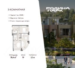 В жилом кластере Родина Парк рядом с природным заказником Долина реки Сетунь продаётся 3-комнатная квартира. Продуманная европланировка, которую легко зонировать под ваши запросы. Потолки от 3,1 м. "Родина Парк" — премиальный семейный кластер с образовательным медиакластером, строящийся на западе Москвы в окружении природного заповедника "Долина реки Сетуни". • Скидки недели на избранный пул лотов • Рассрочка 0% на выгодных условиях до 2 лет • Семейная ипотека, подбор комбо-вариантов ипотечных программ прямо в офисе продаж • Скидки 8% при 100% оплате или ипотеке. ЛОКАЦИЯ: 8 минут пешком до станции БКЛ "Давыдково". 12 минут на автомобиле до Нового Арбата. Удобные выезды на Кутузовский проспект, Аминьевское шоссе. ИНФРАСТРУКТУРА И СЕРВИСЫ ДЛЯ ЖИТЕЛЕЙ - Уникальная экосистема для развития, здоровья и творчества на территории 3,5 Га: - Первый в России образовательный медиакластер (с участием Русской медиагруппы) для творческого развития детей и взрослых с возможностью получить востребованную профессию в сфере шоу-бизнеса. - Инфраструктура и сервисы для семей с детьми на территории жилого кластера (частный детский сад, детские игровые пространства, творческие студии для занятий музыкой и танцами, безопасная и комфортная среда для детей и родителей), событийно-культурная площадка для проведения семейного досуга); - Здоровая среда (биохакинг-центр, фитнес-зал и спортивная инфраструктура во дворе, медитационные пространства, инженерные решения для освещения, свежего воздуха и очистки воды, сервисы красоты и поддержания активного долголетия); - Сервисы заботы (инфраструктура комфорта - подземный паркинг, кладовые, колясочные, консьерж- сервис, умный дом, мобильное приложение, профессиональная управляющая компания, сервисы охраны и обеспечение абсолютной безопасности) - Комьюнити резидентов (социальные пространства для дружеского и делового общения - летний атриум с уличным кинотеатром, зоны отдыха, кафе и рестораны, комьюнити-сервис с культурно- событийной программой в медиакластере); - Модуль благосостояния (комфортные пространства для работы и саморазвития - коворкинги и переговорные). ИНФРАСТРУКТУРА РАЙОНА: Насыщенная образовательная среда: филиалы МГИМО, МГУ, МГТУ, Сколково. Топовые школы: 6 лучших частных школ Москвы и области (Forbes) в 10 минутах езды. Природное окружение для пеших прогулок, спорта и отдыха. "Родина Парк" — это место, где растут и дети, и ваши возможности. Экосистема, где всё подчинено развитию — физически, профессионально, творчески.