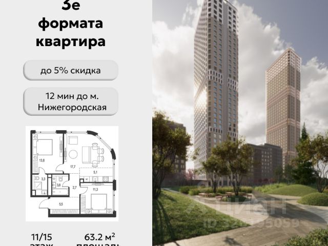 Рассрочка 0% + скидка 5%. Первый платёж 50% при ДДУ, второй 50% — через 12 мес. до ввода ЖК. Продаётся 3-комнатная квартира 82.1 кв.м. в МФК "Варшавские ворота" на 2-м этаже 8 этажного дома. МФК "Варшавские ворота" — это точка баланса между природой и городом, стилем и функциональностью, жизнью сегодня и устойчивым будущим. Коротко о важном: - 1 минута пешком от м. Аннино; - Удобные выезды на Варшавское шоссе и МКАД; - Вид из окон на Битцевский лес и Аннинский лесопарк; - Высота потолков 2,7 - 3 м; - Закрытый двор-парк; - Школы и детские сады в 10-15 минутах пешком от дома; - Технические лоджии для размещения кондиционеров; - Подземный паркинг; - РГ-Девелопмент — ТОП-20 крупнейших застройщиков Москвы. Проект сочетает в себе современную архитектуру и продуманное благоустройство с уникальным природным окружением. Всего в нескольких минутах от дома — девять парков, каскад прудов и крупнейшие лесопарковые зоны Москвы, создающие ощущение жизни в зеленом оазисе посреди мегаполиса. Архитектурная концепция - стиль Чикаго в Москве. Фасады облицованы вентфасадами под клинкерную плитку. Металлические вставки придают динамику, подчёркивая современный характер комплекса. Фасады подчеркивают строгие линии и современный стиль, а входные группы разработаны московским бюро Syntaxis. Лобби оформлены с применением керамогранита, декоративной штукатурки и гипсовых панелей, детали из латуни добавляют изысканности. Проект находится в одной минуте пешком от метро "Аннино", в 12 минутах от станции "Улица Академика Янгеля" и рядом с МЦД-2 "Красный Строитель". Для автомобилистов предусмотрен прямой выезд на Варшавское шоссе и два съезда на МКАД, что позволяет быстро добираться в любую часть города. Среди планировочных решений представлены разнообразные форматы: от функциональных студий до просторных 4-комнатных квартир и апартаментов площадью от 22 до 105 м². Высокие потолки усиливают ощущение простора, а продуманные планировки включают мастер-спальни, гардеробные, угловые окна, объединённые кухни-гостиные и несколько санузлов. Центральное пространство комплекса — закрытый двор без машин. Он разделён на функциональные зоны: детские игровые комплексы, спортивные площадки, воркаут-зоны и уютные места для тихого отдыха. На первых этажах разместятся магазины, кафе и сервисы, что позволит решать повседневные задачи, не покидая территорию комплекса. Для семей с детьми предусмотрен частный детский сад на 50 мест. Подземный паркинг и кладовые обеспечат удобство хранения и безопасность автомобилей. Комплекс окружён девятью парками и лесопарками, каждый из которых обладает своей атмосферой. Выйти на пробежку в Аннинском лесопарке, насладиться прогулками по обширным аллеям в Битцевском лесу, спланировать пикник или велопрогулку в Покровском и Народном парках, любоваться каскадом Кировоградских прудов. Всего в двух станциях — музей-заповедник "Царицыно" с дворцами, фонтанами и живописными пейзажами. Здесь каждый житель найдёт своё любимое мест