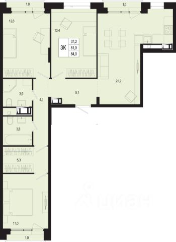 • ✓ В базе Циан 86 3-комнатных квартир в кирпично-монолитном доме рядом с метро Бунинская аллея