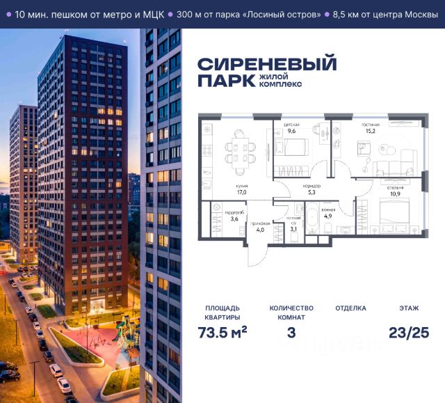 Продаётся просторная 3-комнатная квартира общей площадью 61.3 м² на 2 этаже в новом жилом комплексе "Сиреневый парк", расположенном в Восточном административном округе Москвы на улице Тагильская. Всего 10 минут ходьбы от станции метро "Бульвар Рокоссовского" и одноимённой платформы МЦК. Высококачественное монолитное строительство гарантирует сохранение тепла в доме, а наличие квартир с предчистовой и чистовой отделкой позволяет вам сэкономить время и сразу же переехать в свое жилье после покупки. Благодаря разнообразию планировок вы сможете выбрать идеальный вариант, соответствующий вашим предпочтениям и образу жизни. Предлагаются квартиры: - с просторными кухнями-гостиными, - с нишами для хранения вещей и отдельными гардеробными, - мастер-спальни с собственными санузлами, - большие комнаты с высокими потолками (2,9 м) и с увеличенными безопасными окнами (1,95 м) , которые наполнят ваш дом естественным светом; - с чистовой отделкой по двум дизайн-проектам на выбор; - с остекленными лоджиями и панорамными видами на лес. Каждая деталь в этом доме создана для вашего комфорта: - безбарьерная среда, - бесшумные скоростные лифты, - машиноместа в отапливаемом подземном паркинге и кладовые на -1 этаже с доступом из лифта, - развитая инфраструктура с супермаркетами, кафе, фитнес-клубами, салонами красоты и частным детским садом обеспечивает максимальное удобство жителям. В 300 метрах от ЖК расположен Национальный парк "Лосиный остров". Способы покупки: 100%, Trade-in, Семейная ипотека без наценки, стандартная ипотека. Запишитесь на просмотр в офис продаж и получите свою персональную скидку по акции Назови свою скидку. ЖК "Сиреневый парк" — гармония в деталях, совершенство в каждом моменте. Застройщик проекта - AFI Development.