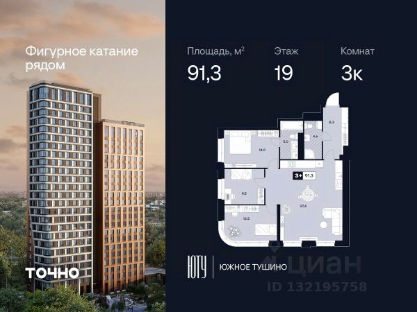 • ✓ В базе Циан 69 3-комнатных квартир в кирпично-монолитном доме рядом с метро Спартак